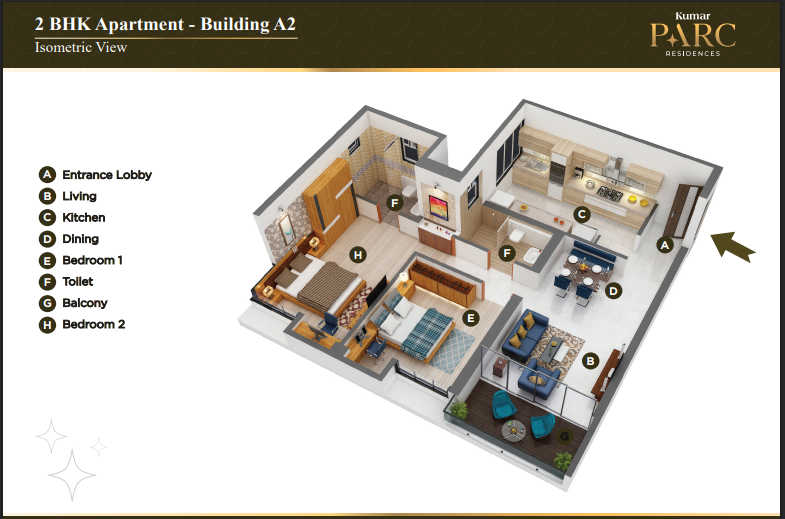 2 BHK - 834 usable - 1.25Cr